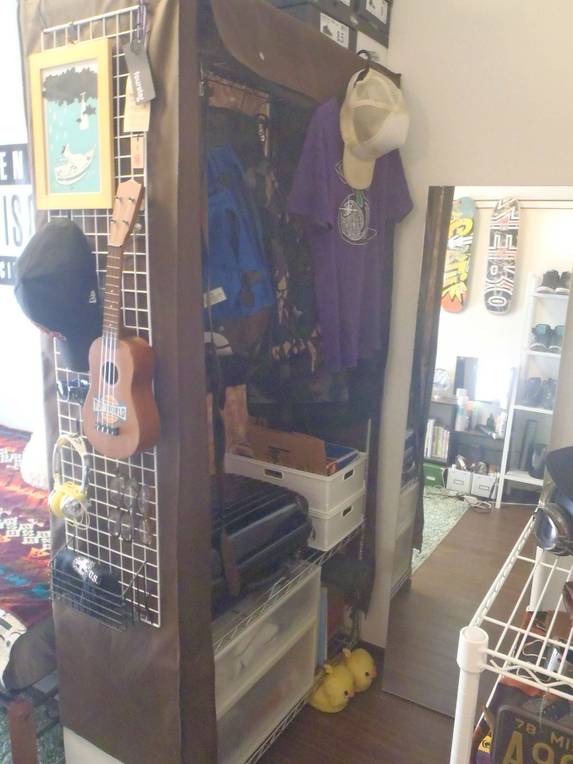 オシャレな家具が台無しだから、ゴミを片付けて、服をクローゼットに入れてあげて・・・