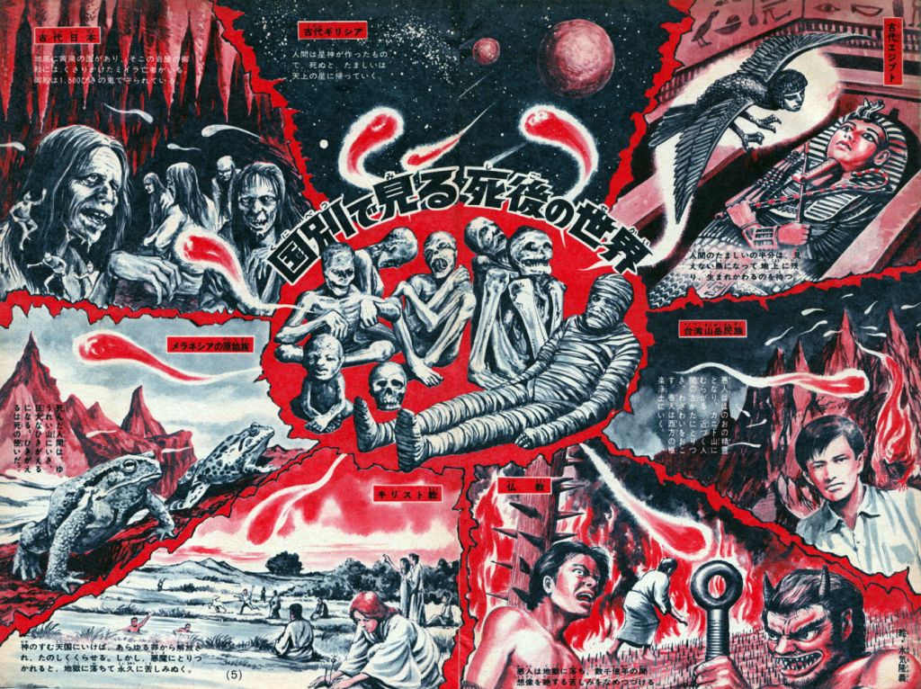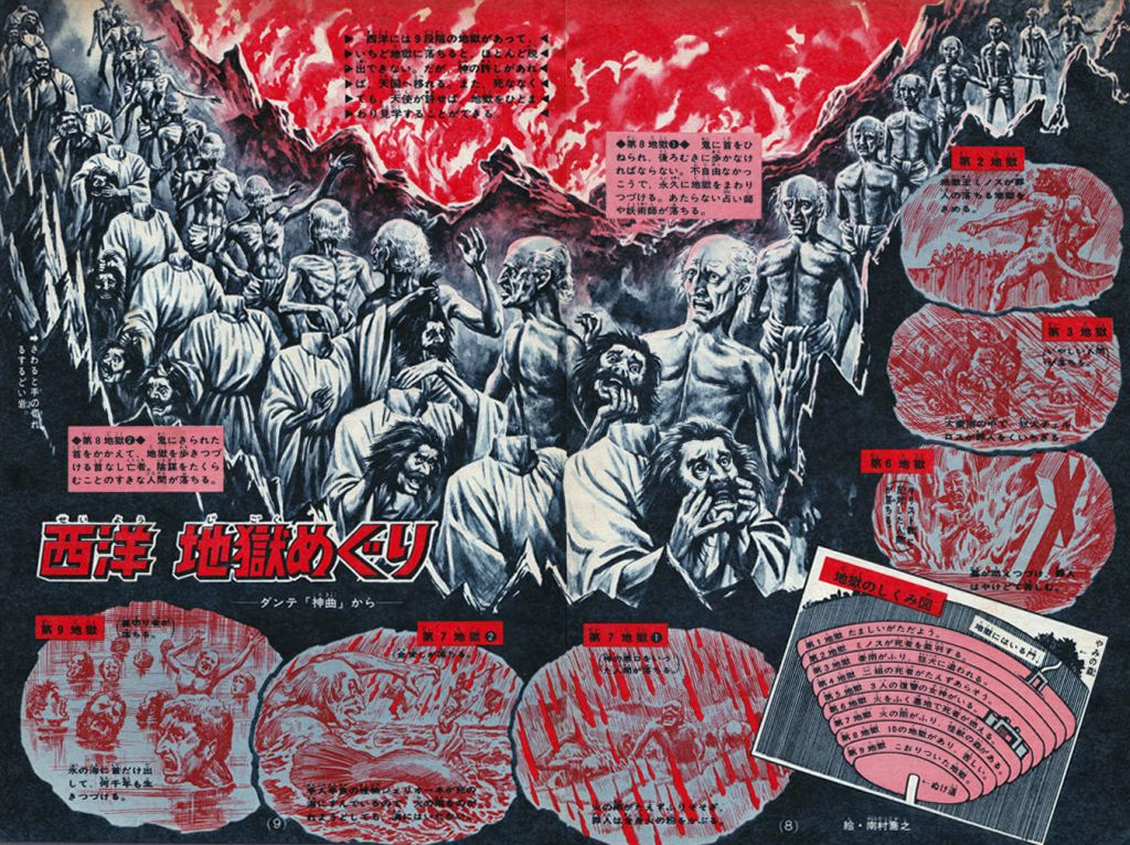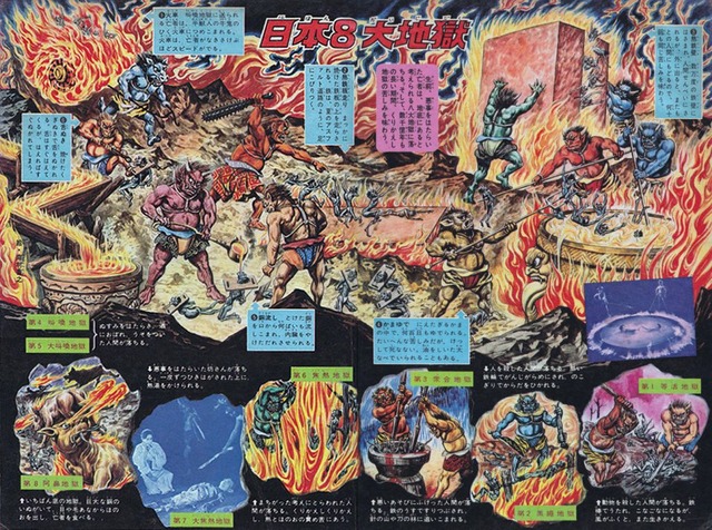 舌を抜き出されて100本 の釘を打たれ、毒や火を吐く虫や大蛇に責めさいなまれ、熱鉄の山を上り下りさせられる。