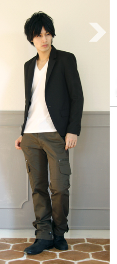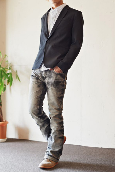 ジャケットのサイズ合ってなくて、足が細いのに短く見える