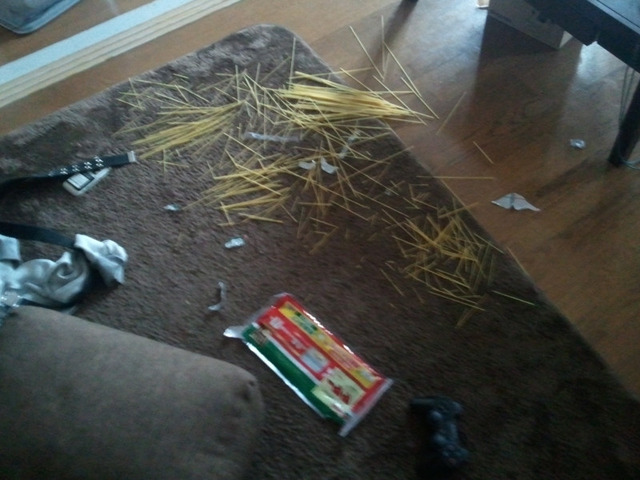 お隣さんの犬がパスタの麺飲み込んで死んじまった・・・