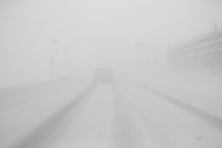 猛吹雪で視界が10メートルもない道央自動車道を時速40kmで運転