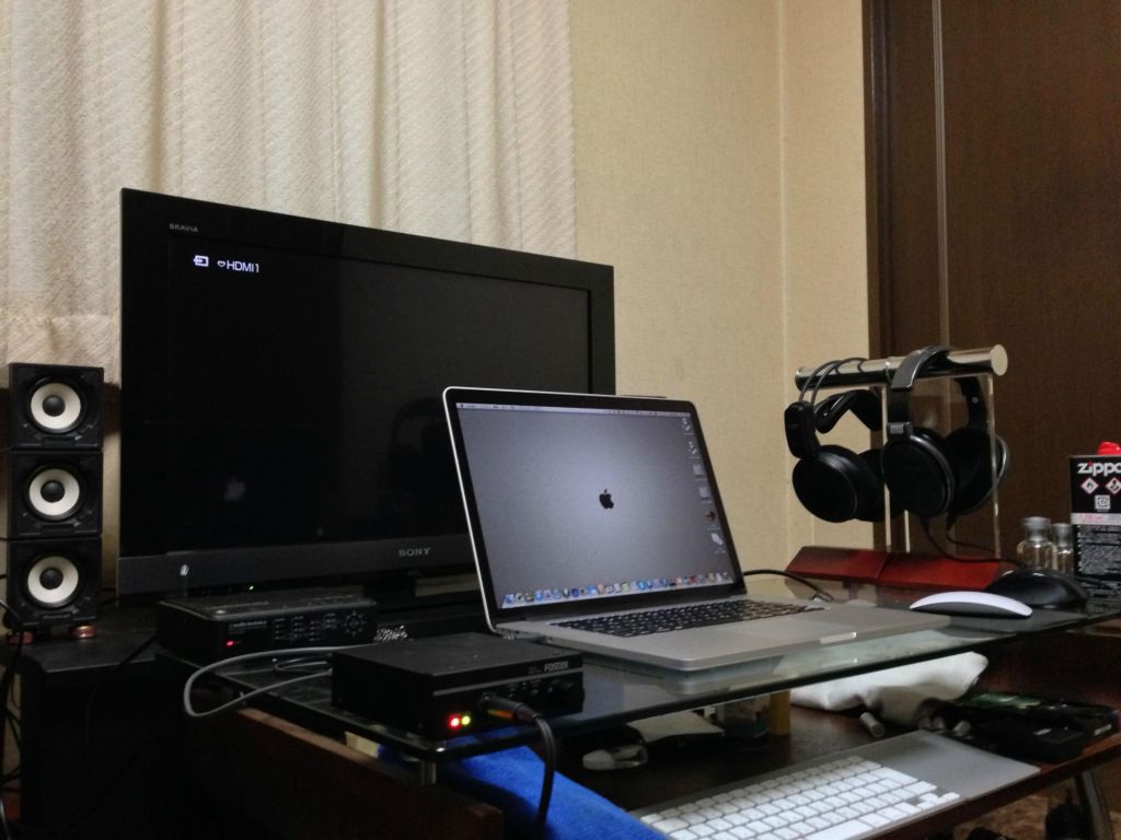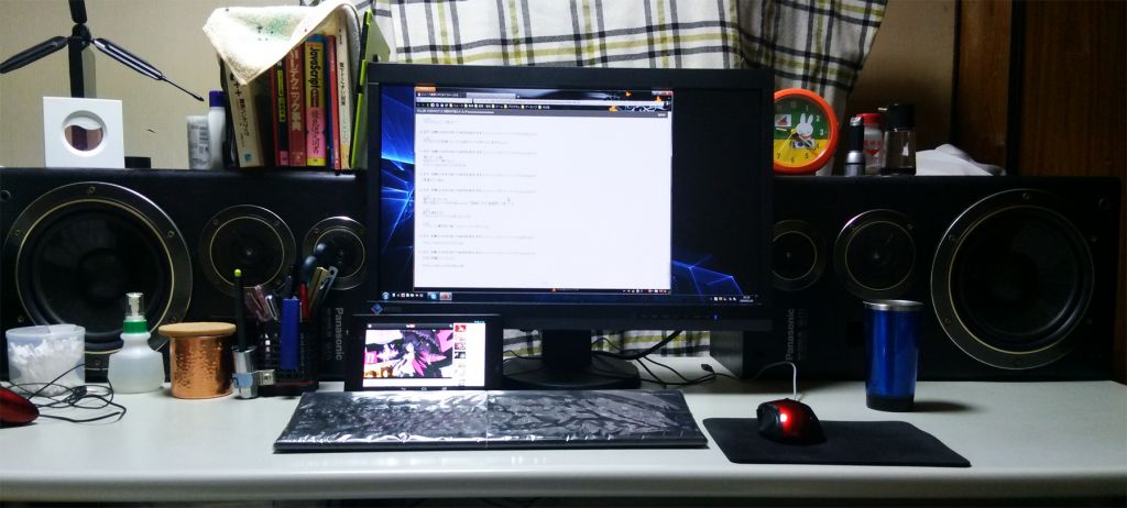 奥の液晶はノートをHDMIかAirplayで接続してから画面閉じて使ってる