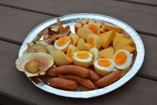 ゆで卵とウインナーはちょいと燻し不足