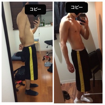 アフターの方は陰影つけて撮ってるよね。それにトレーニング直後のパンプアップしたときやろうな。