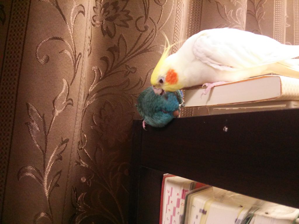 セキセイ(雄)の方の子がオカメ(雌)を自分の嫁と思ってる