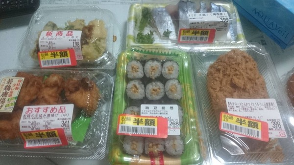 【戦利品】スーパーの半額弁当争奪戦に参加してきたぞおおおおおwww(※画像あり)