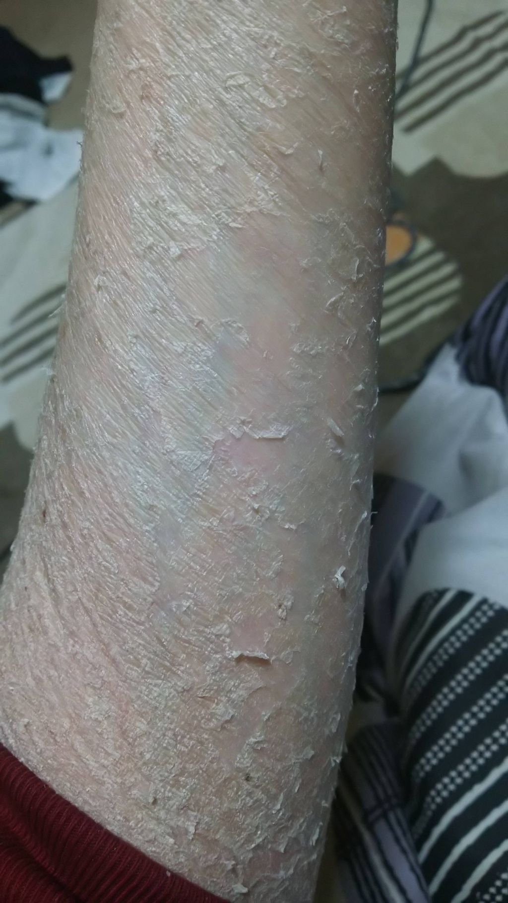 ここまでじゃないけど似てる。ただし私の場合痒い。ワセリン塗ってるとべた付くけど痒み落ち着く。冬場ひどい
