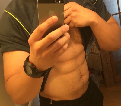鍛えても腹が出てるな