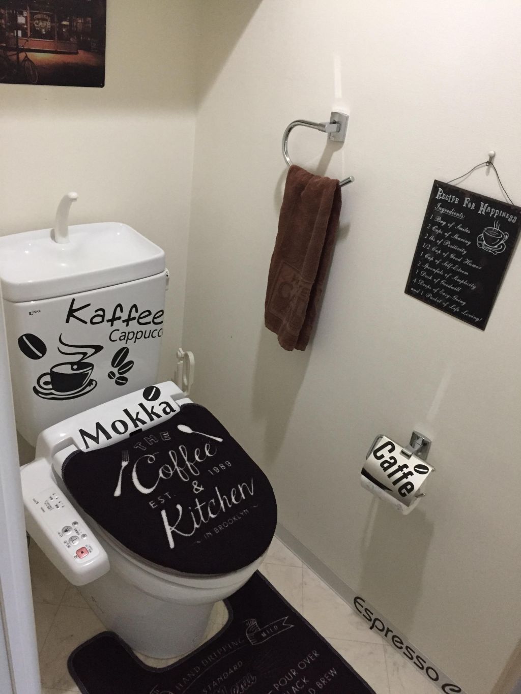 おしゃれカフェにあるようなおしゃれなトイレにしたのかと思ったら、ただのトイレにカフェの文字貼っただけだった。