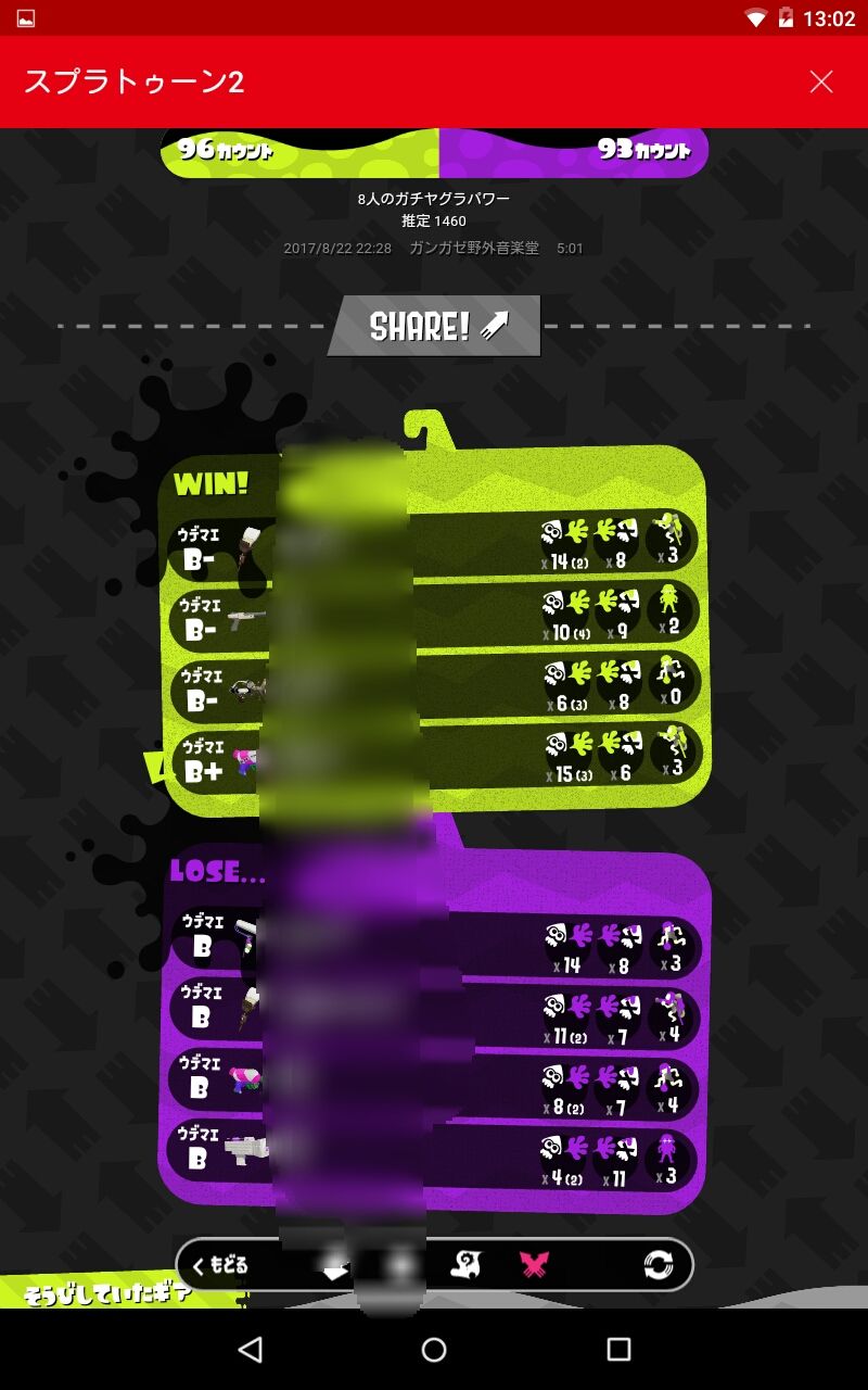 俺も泥酔してスプラトゥーンやったらこのくらいの戦績になるよ