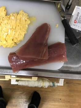 マグロ漬け丼に錦糸玉子?