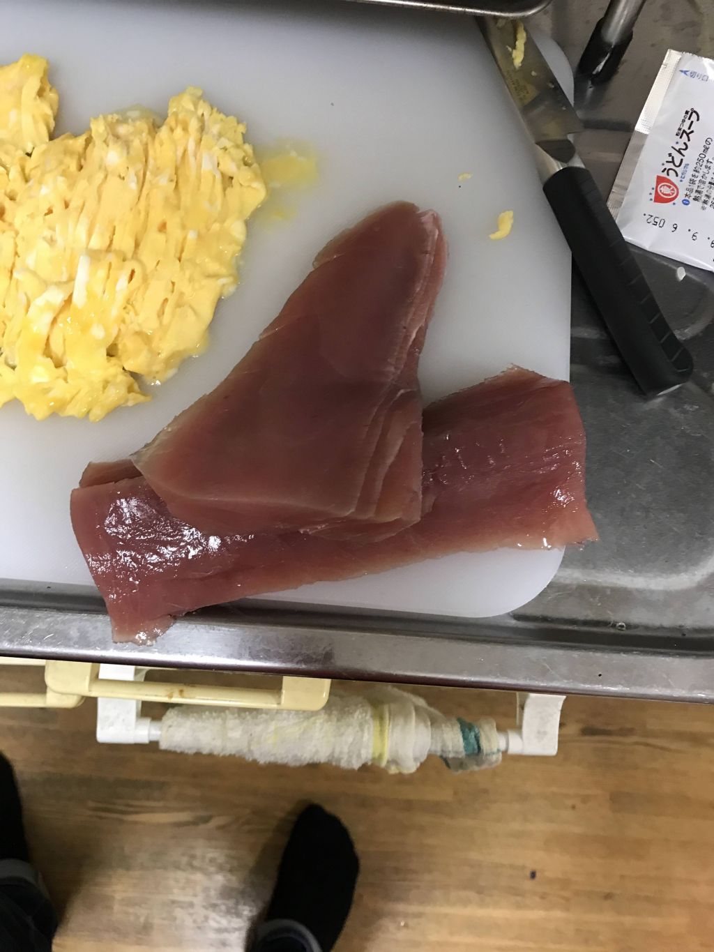 まな板から垂れてるので冷めたわ