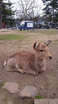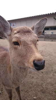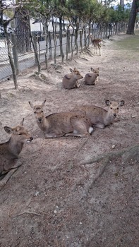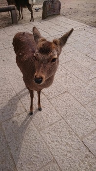 修学旅行で行った時、鹿に腕に頭突きされたことある。