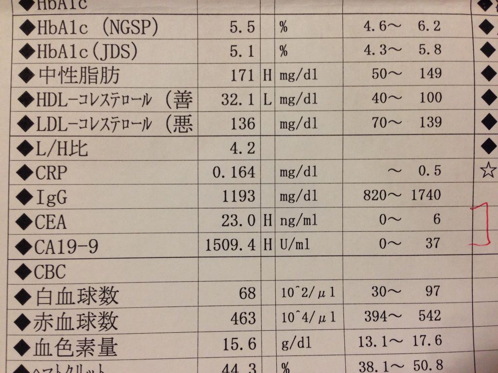 CA19-9は100以上だと異常値らしい…