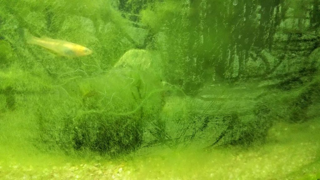 水草いっぱい入れてエビいれて水質安定させな