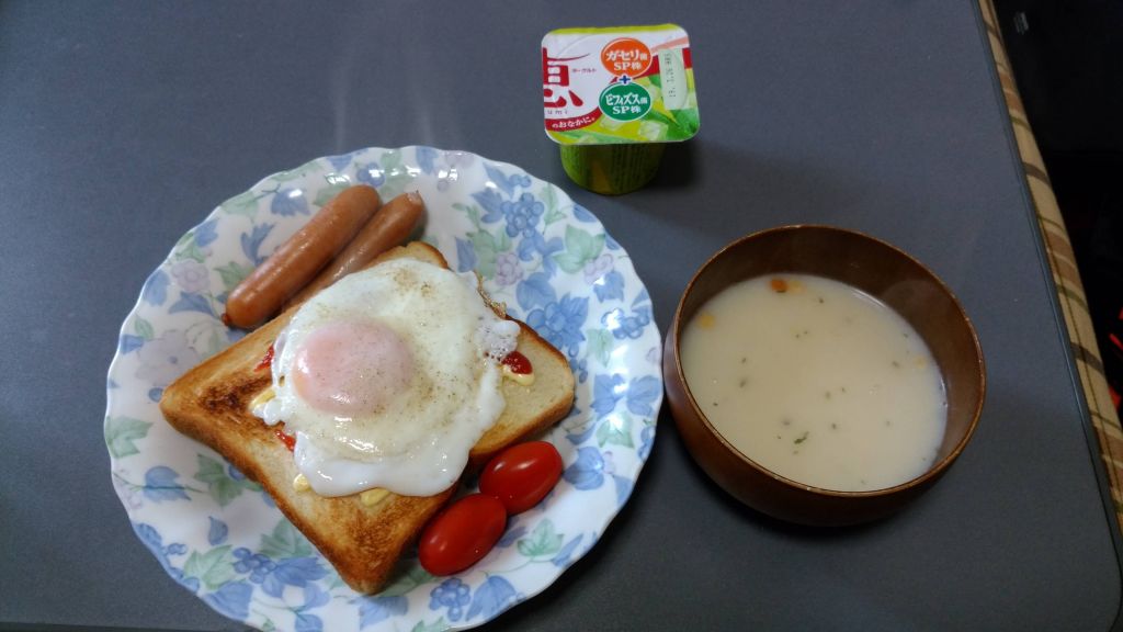 普段はパンがごはんでスープが味噌汁で、あと納豆ってのが基本やな