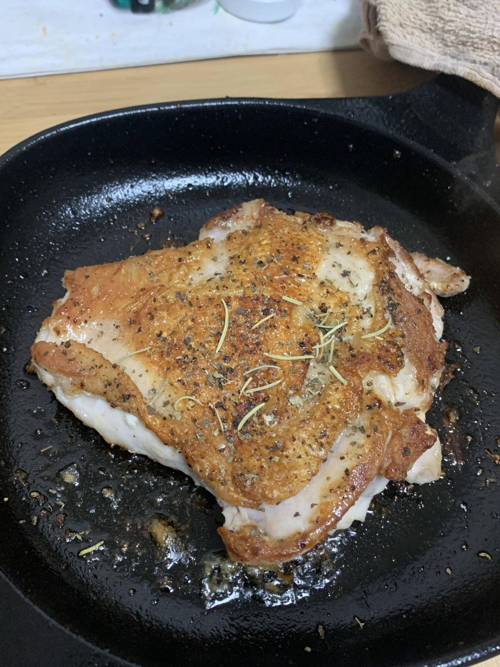 ステーキに香草乗せようとしてスキレットで焼いたら秒で焦げて草