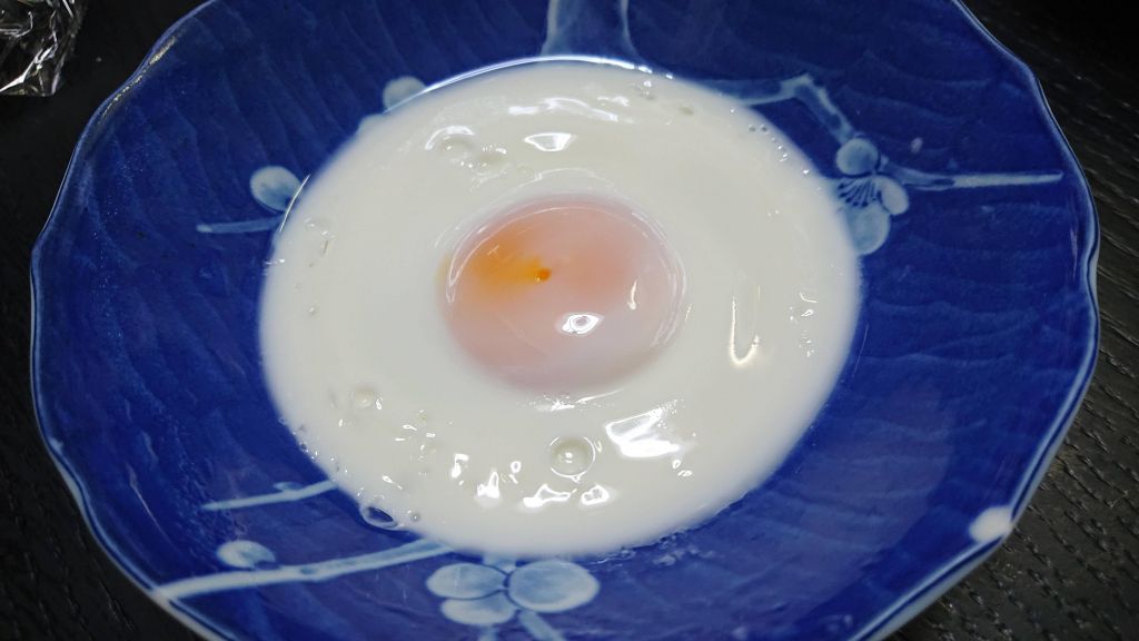 ちっちゃいお椀に熱湯入れて卵落としてラップかけて40秒チンで爆速半熟卵出来るで