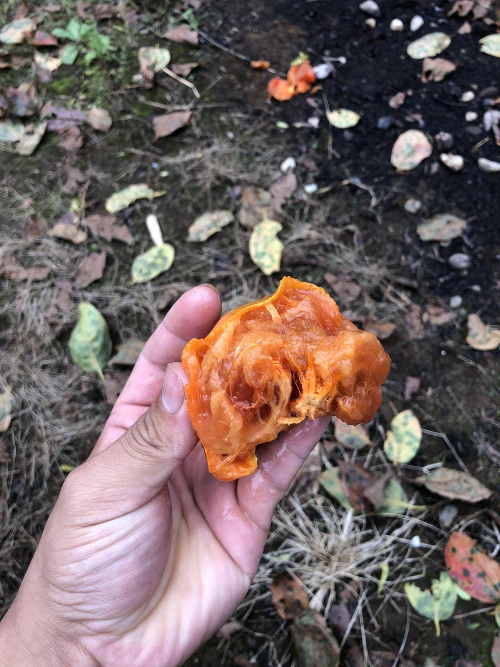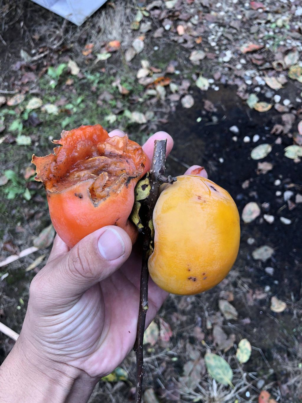 昔完熟してジュルジュルの富士柿を採って庭に置いてたら近所の犬に盗み食いされたな