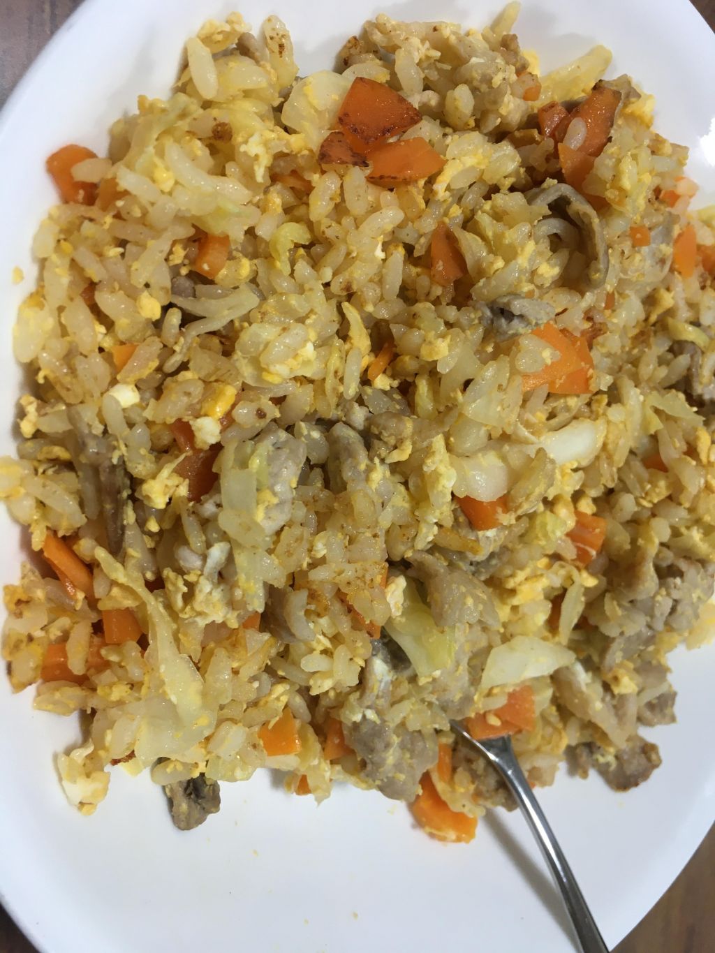 豚肉、ニンジン、キャベツ、卵、ご飯よ