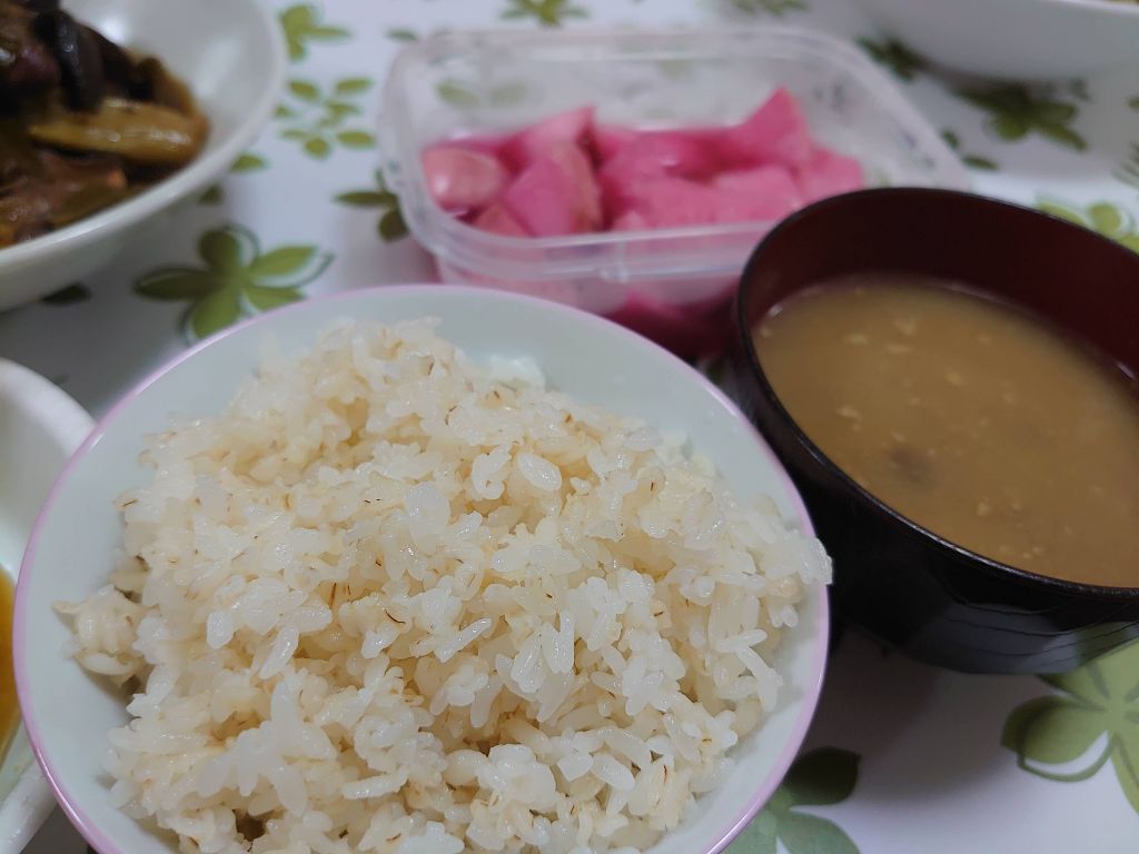 麦飯となめこの味噌汁とかいう最強の組み合わせやぞ