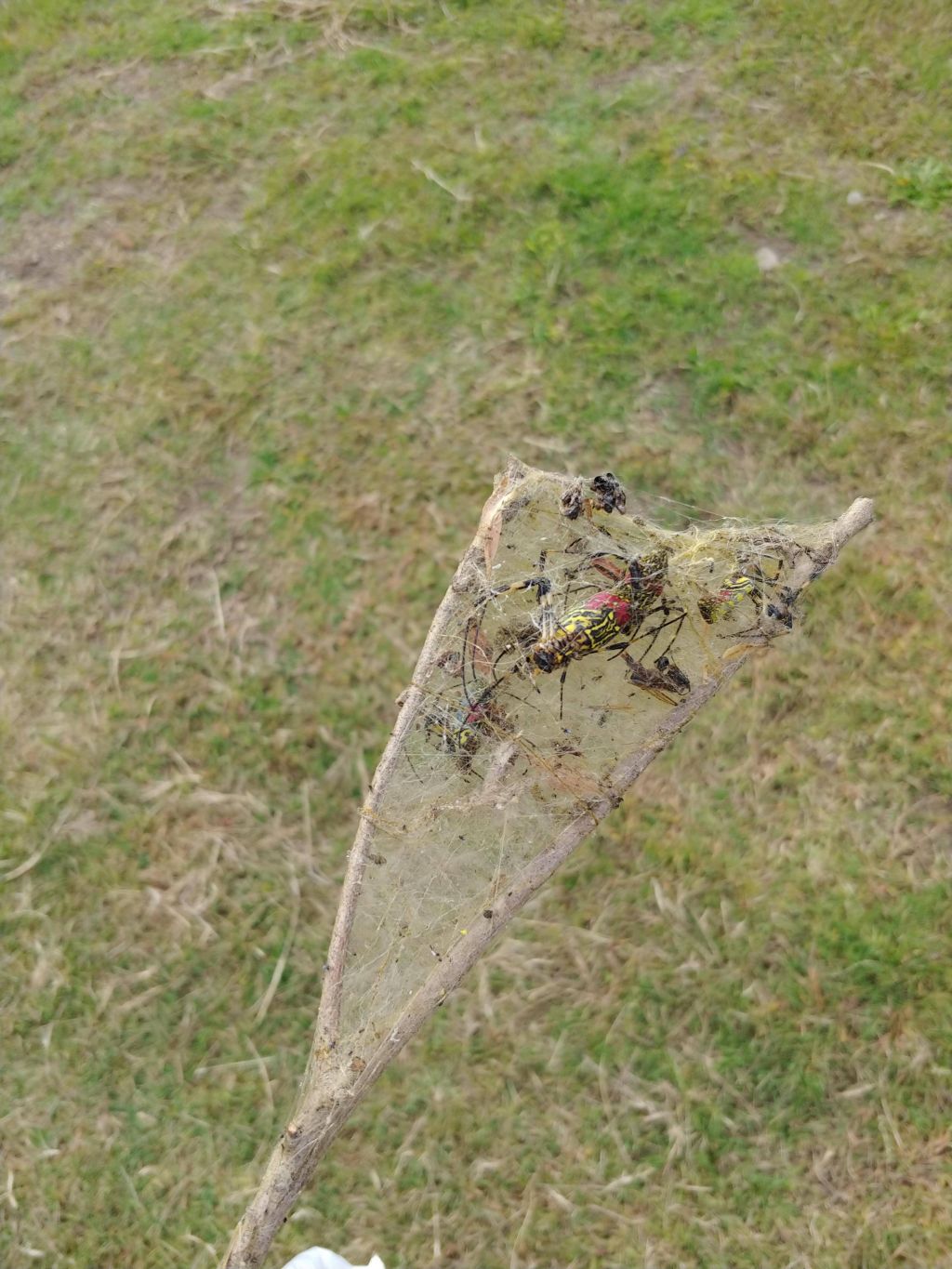 昔本かなんかでY字の枝に蜘蛛の巣引っ掛けて虫取り網になるってのを試したら、蜘蛛ごととれた
