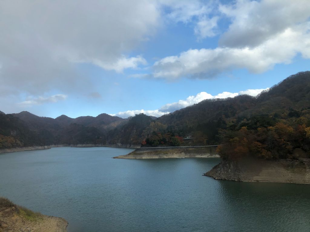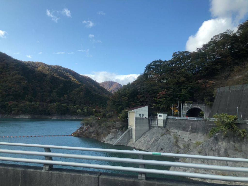 近くに栗山ダムていうロックフィルダムがあるんだけど、谷が開けたところに巨大な堤体があるから存在感すごい