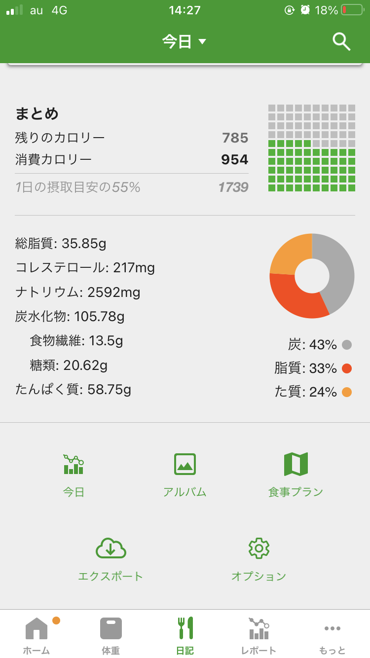 運動の消費カロリーとかも出してくれるけどそこを考慮してないからあんまり正確じゃないという(´・ω・`)