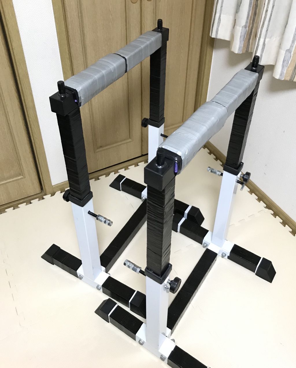ディップスして手痛かったからゴム巻きつけた後ダクトテープ巻いたんや