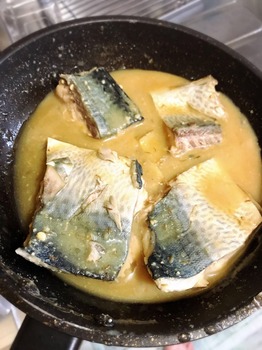 半分昼ごはんにおろポン塩焼きして夜用に半分を味噌煮仕込み中