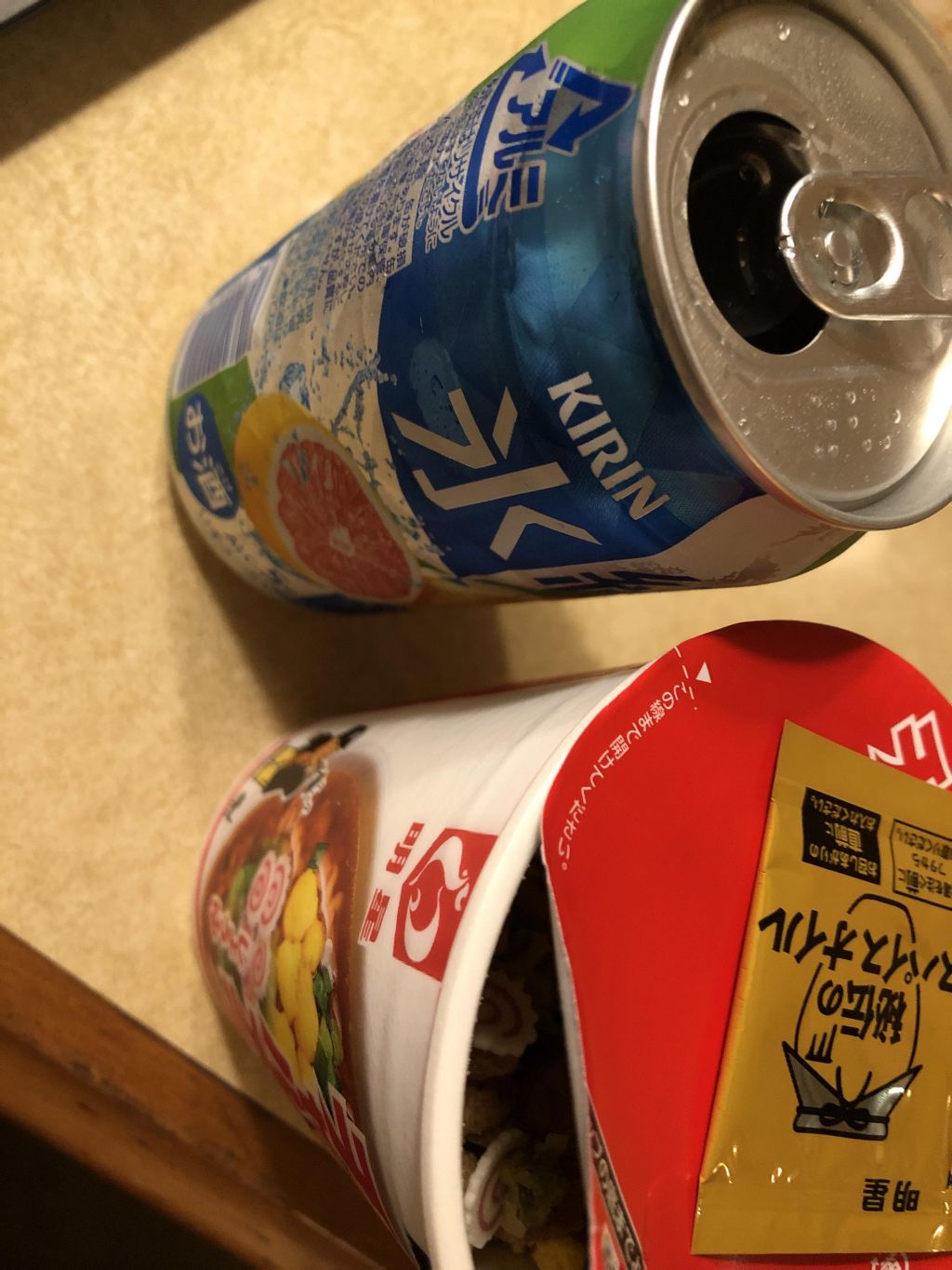 チューハイとカップ麺です