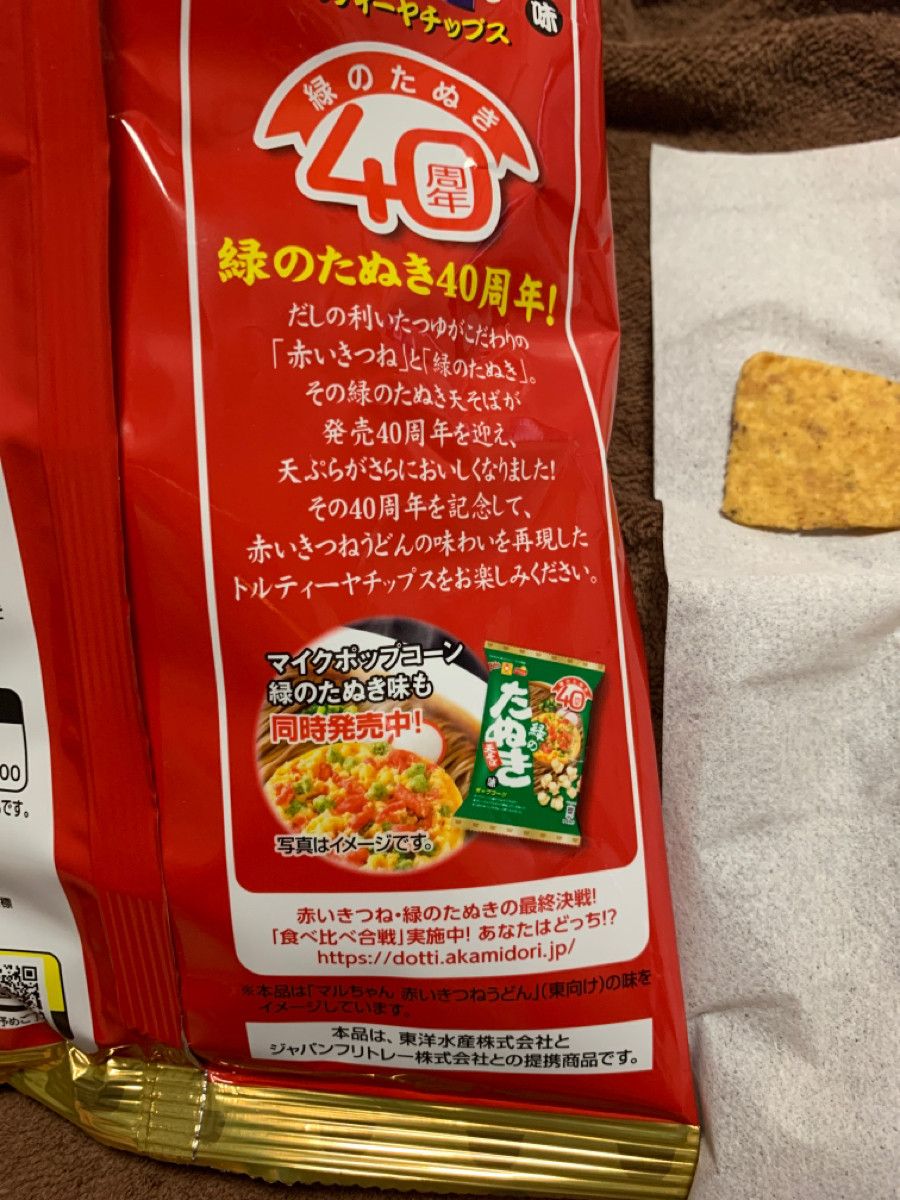 ってか、まんま赤いきつねのトルティーヤチップスって感じ