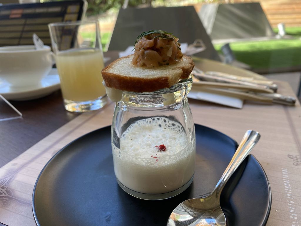 食べ方わからんから白いのちょっとパンに乗せて残りはすくって食べたわ