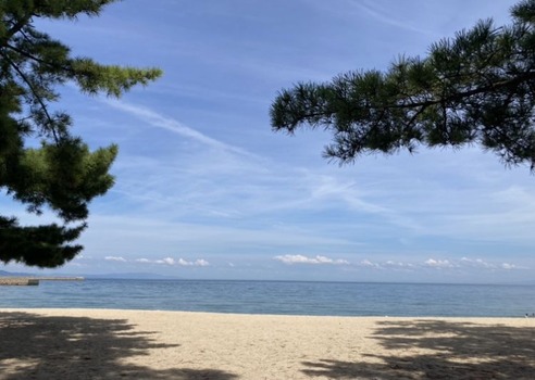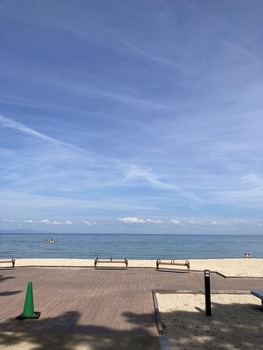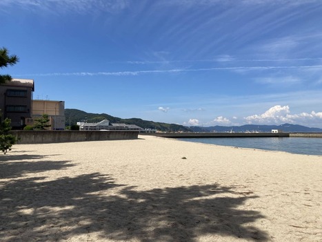 海にいるのはカップル1組と男性4、5人組と漁師だけやわ
