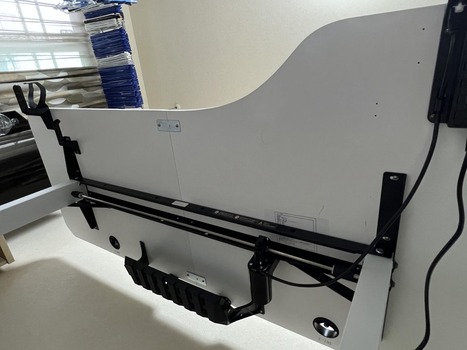 学習机の出っ張りにアーム張ってスペース確保して首労ってる