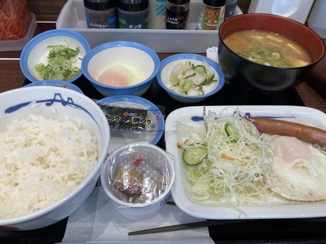 松屋の朝定食、割とこんなので良いって内容だし、自分で準備するには絶妙に面倒くさいから良いと思うんだけど。いざ食うと米が足りないんよね。量がじゃなくておかずに対して