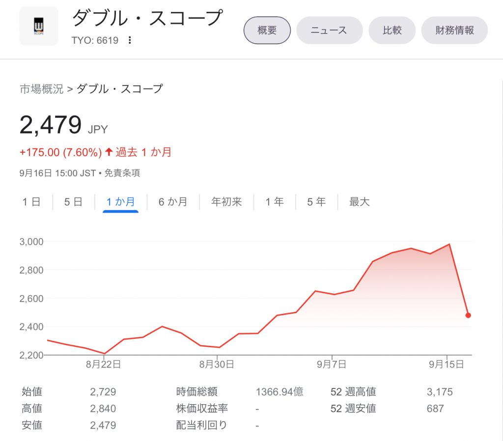 ダブルスコープやで 今日の日経の売買1位
