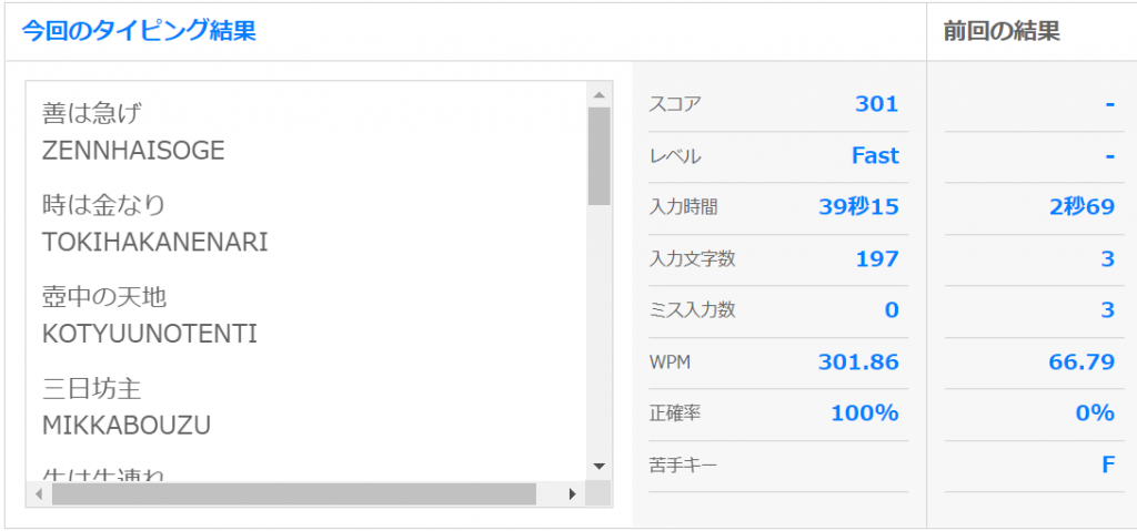 etypingはテーマで難易度変わり過ぎだから、同じテーマで比較しないと参考にならんわ