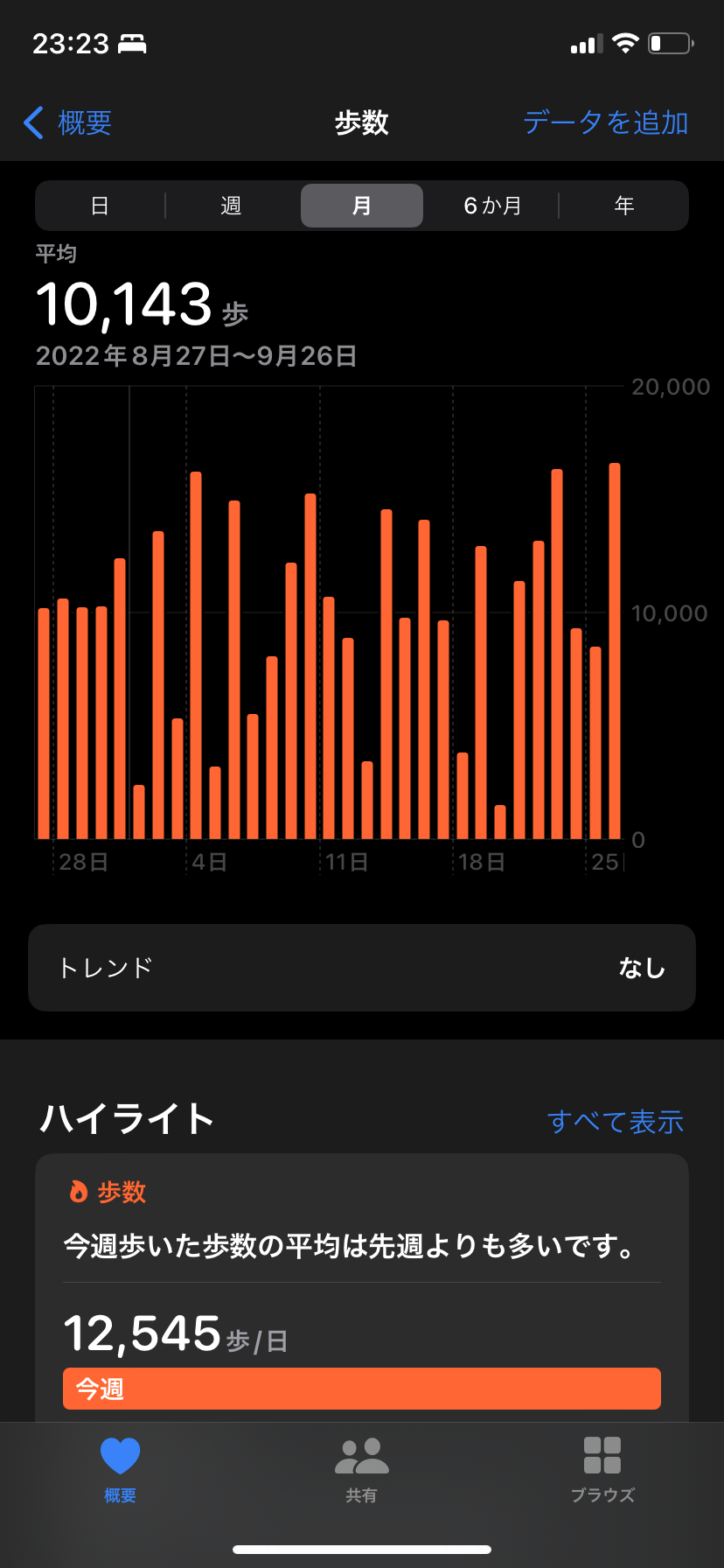 1ヶ月平均1万歩、8キロ毎日歩いてる計算になる