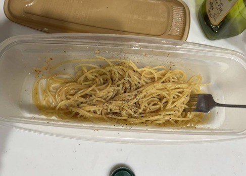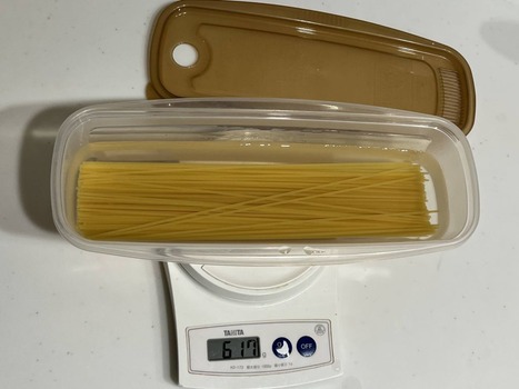 あの容器を使ってパスタを水に1時間ぐらい漬けておくと茹で時間3分ぐらいになるからずっとそれやってる。