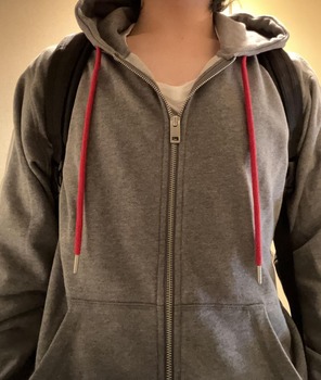 このグレーで赤紐のパーカーまんま化物語の阿良々木くんのやつ