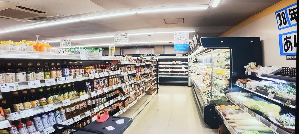 でもこのスーパーの通路幅からしてこの地域は田舎ではないよね、田舎のスーパーは車で行ってカートでの買い物が基本だから通路幅広すぎてビビるもん、カート同士なのに避けなくてもすれ違えるのよ