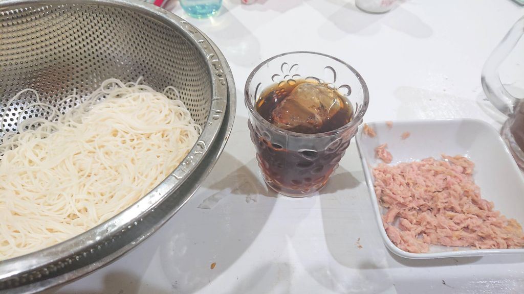 シーチキンを口に含んでめんつゆを少し飲むと調和される
