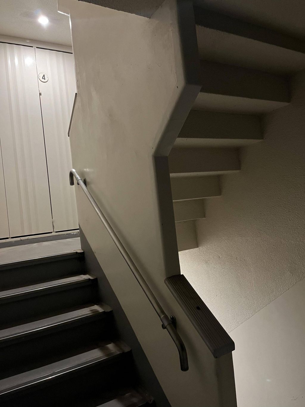 後ろ、画像の左手前にも手すりあるからそっちから来そう