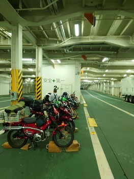 新日本海フェリーとかはロープで固定するんだけど、瀬戸内海航路だから固定しないのかな…
