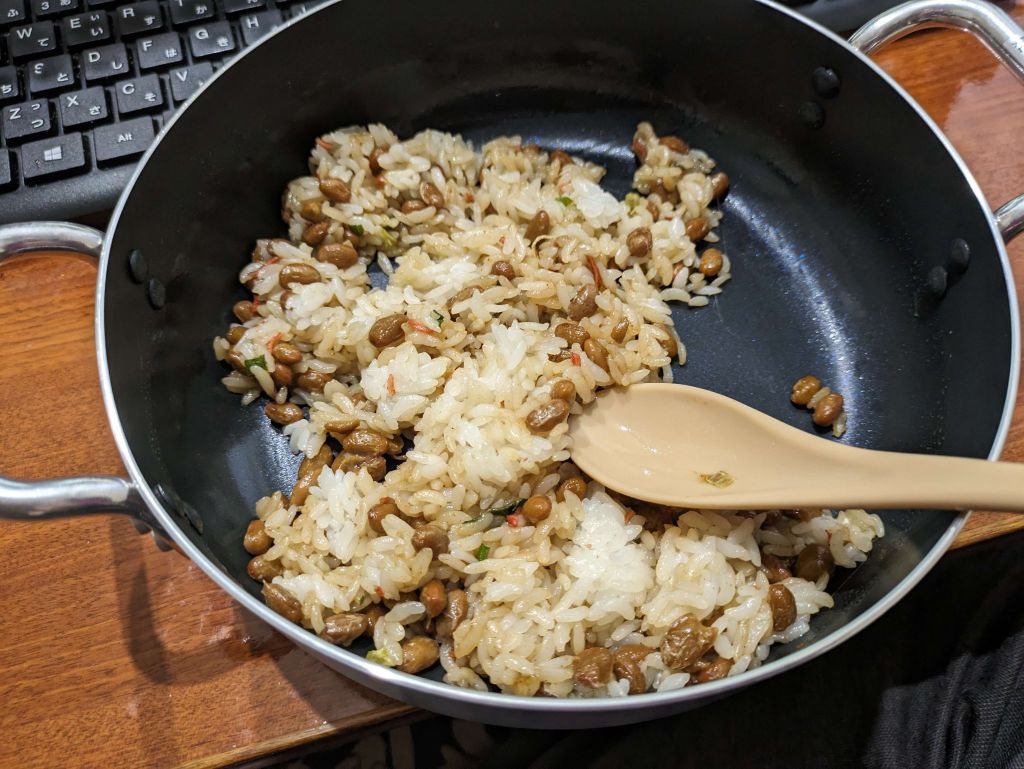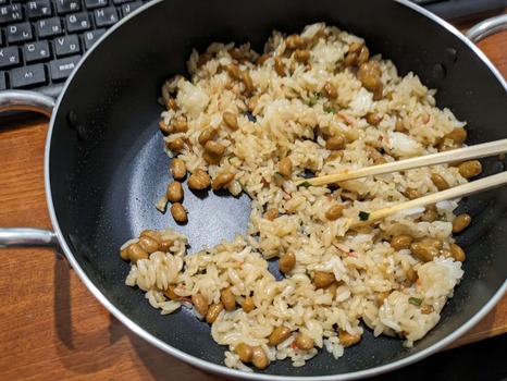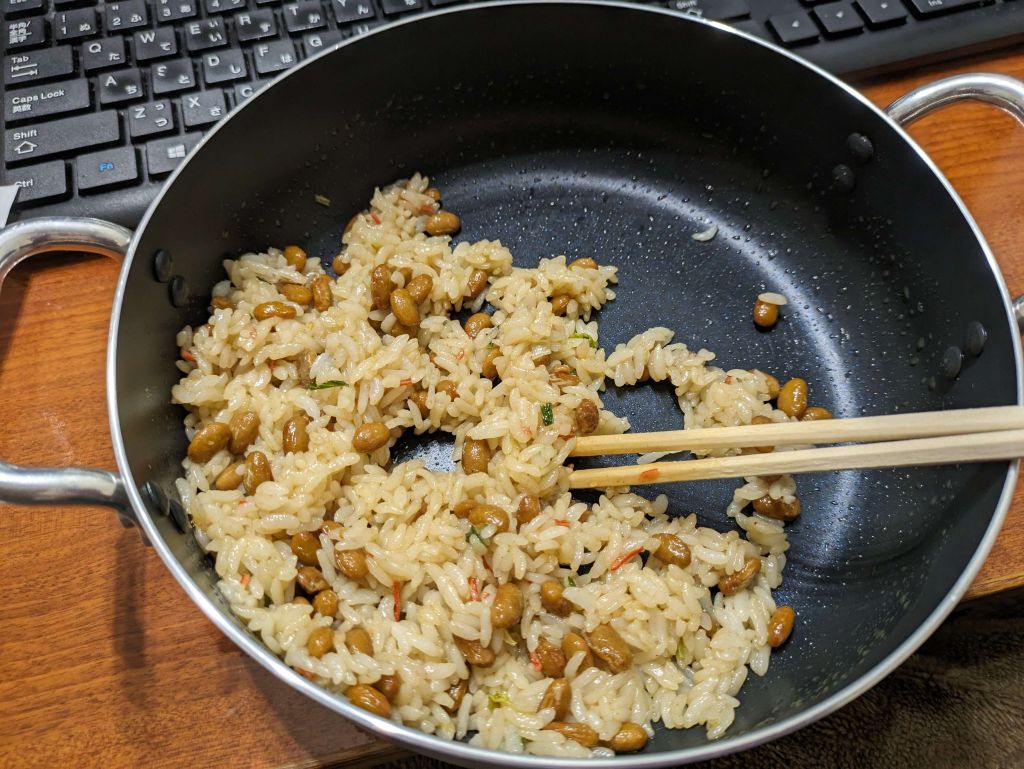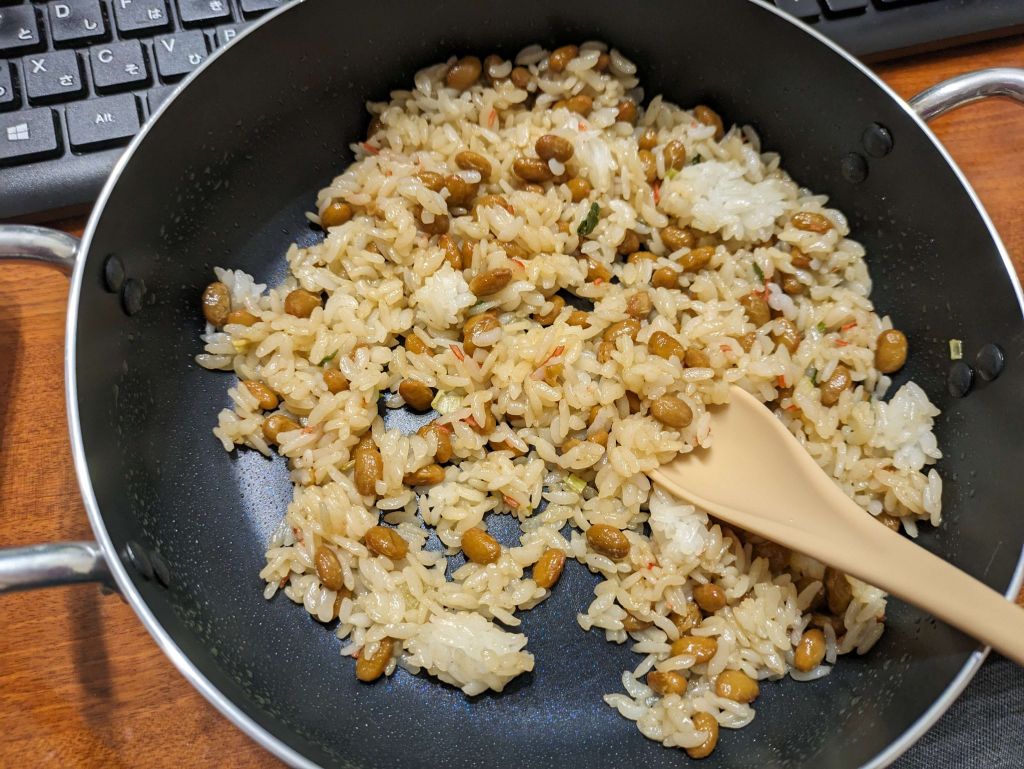 毎晩納豆炒飯が食べられる幸せ…コスパも良いし後片付け…はちょっと面倒臭いけど