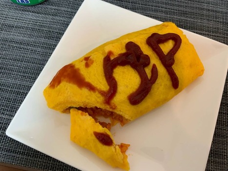 いつも卵焼きをチキンライスに乗せて切ってる