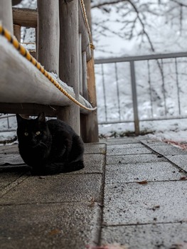 この猫にとっては初雪になるのか