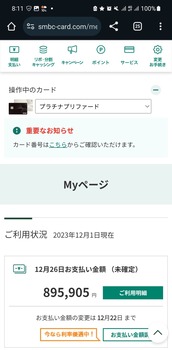 【訃報】俺氏のクレカ請求額がエグいと話題に(※画像あり)
