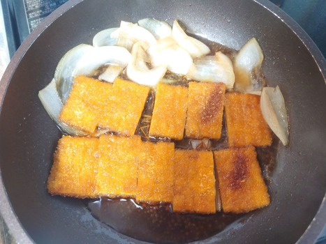 カツ丼の玉ねぎは細めに切らないと変だなあ